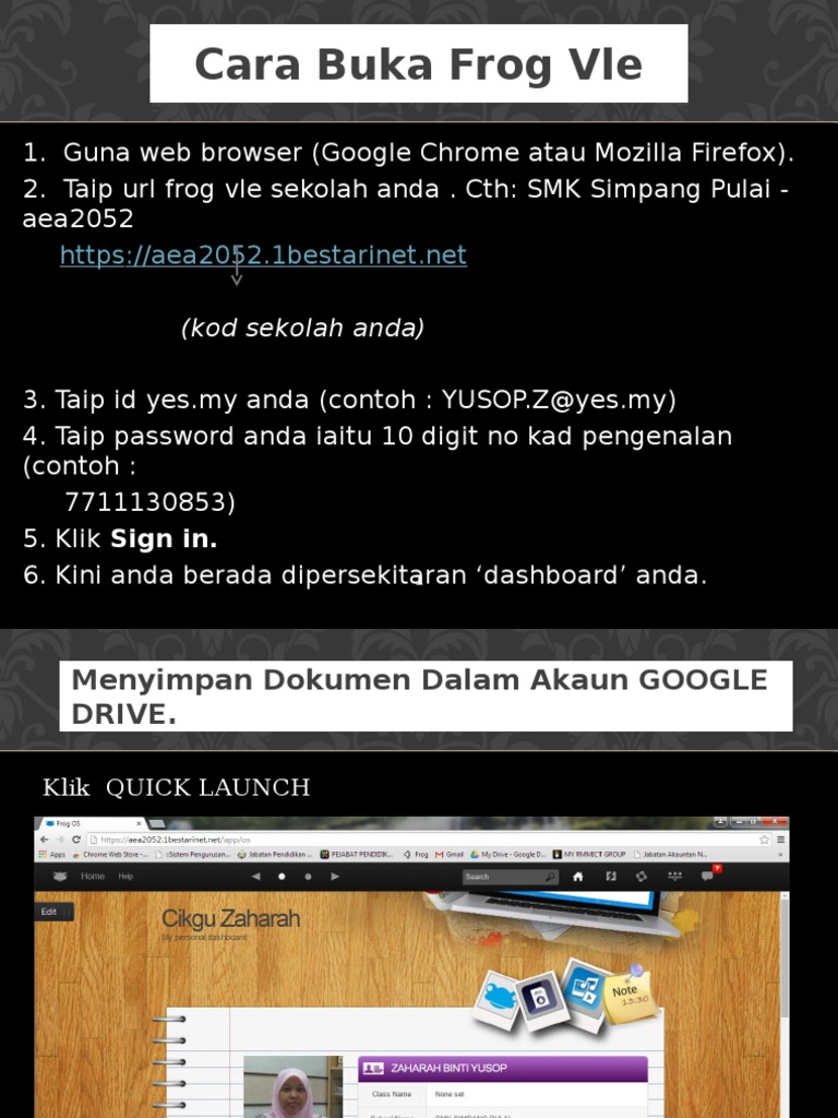 Ini kerana 10000 buah sekolah di Malaysia yang mempunyai akaun frog mempunyai alamat yang sama. Login Sistem Frog VLE melalui Telefon dan Tablet Pemberian KPM. Persekitaran Pembelajaran Maya Frog VLE adalah satu sistem pembelajaran berasaskan web yang menyerupai dunia pembelajaran sebenar dengan.