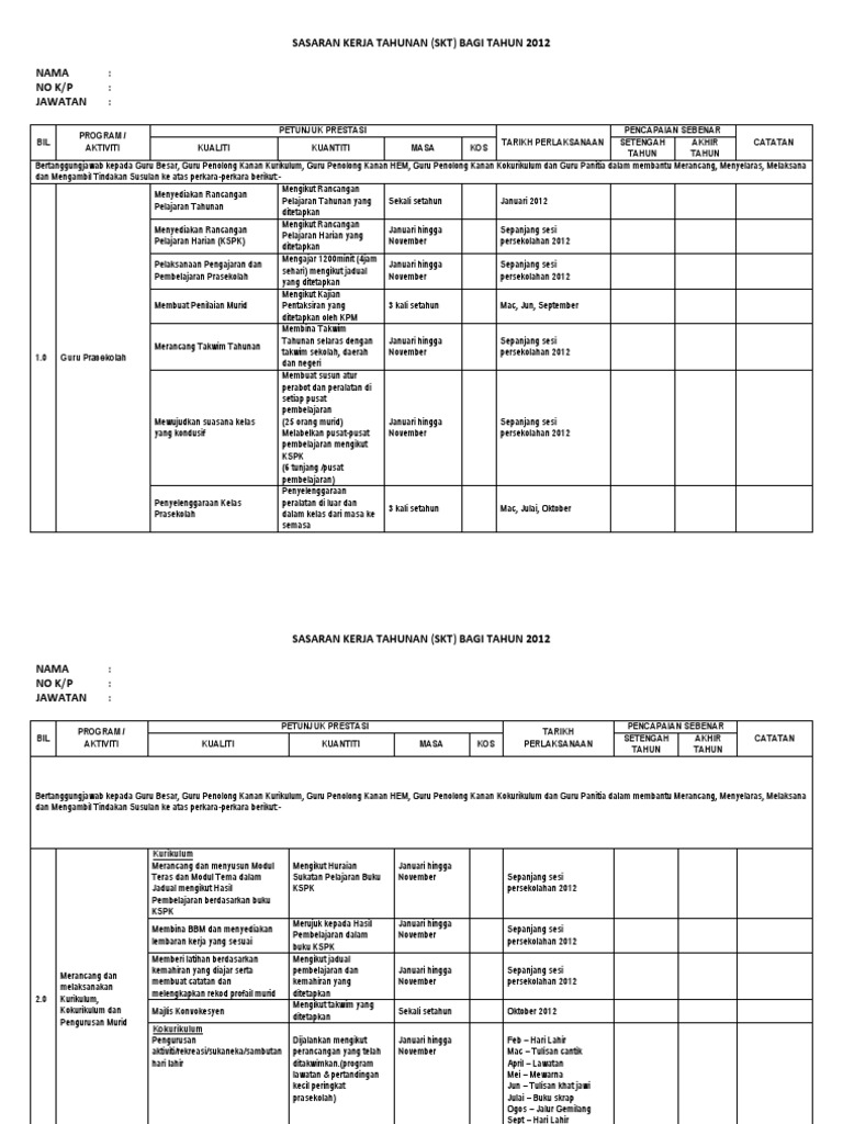 Contoh Sasaran Kerja Tahunan 2012 Pdf